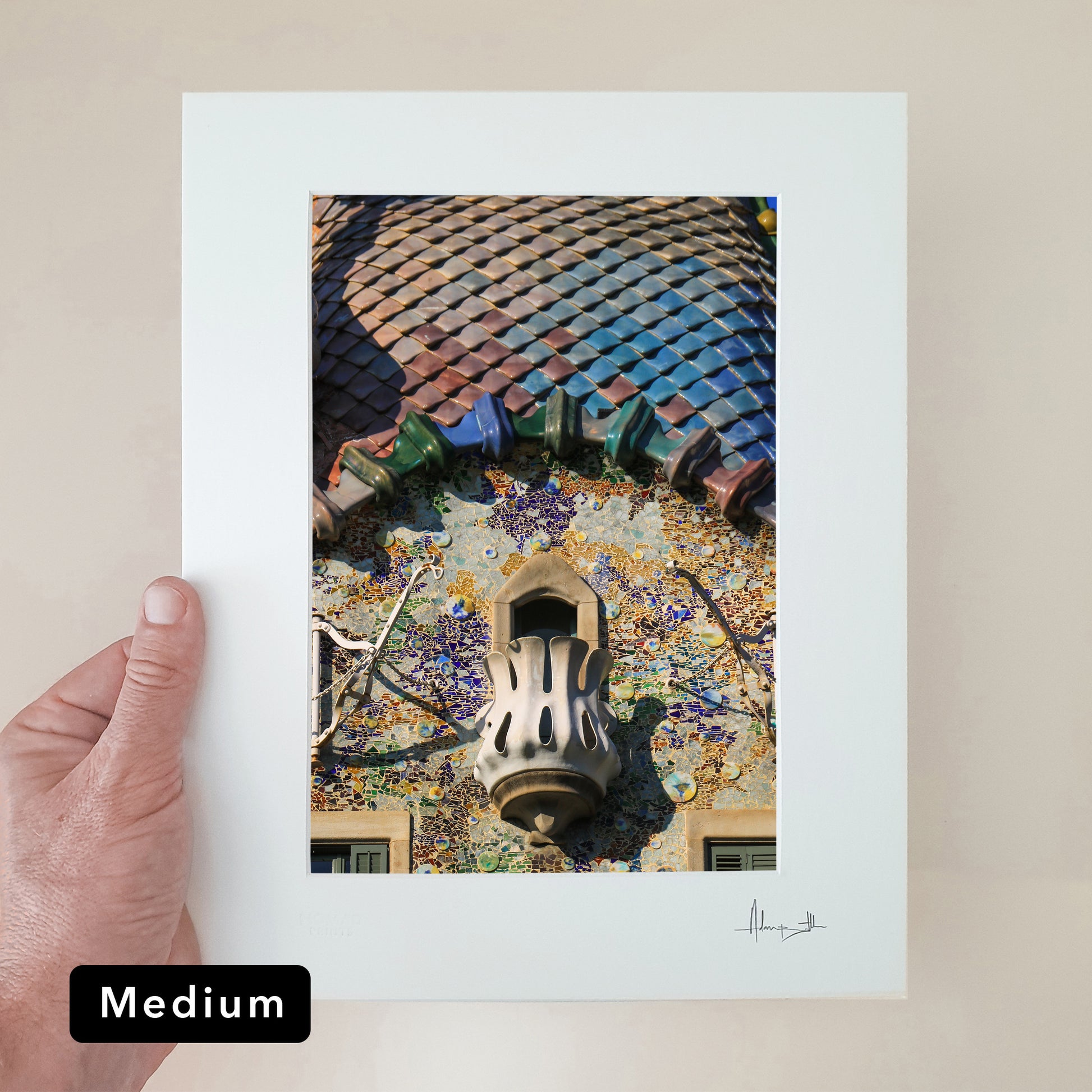 - Window mounted in a 1mm thickness white passepartout matt board.Hand signed in pencil.