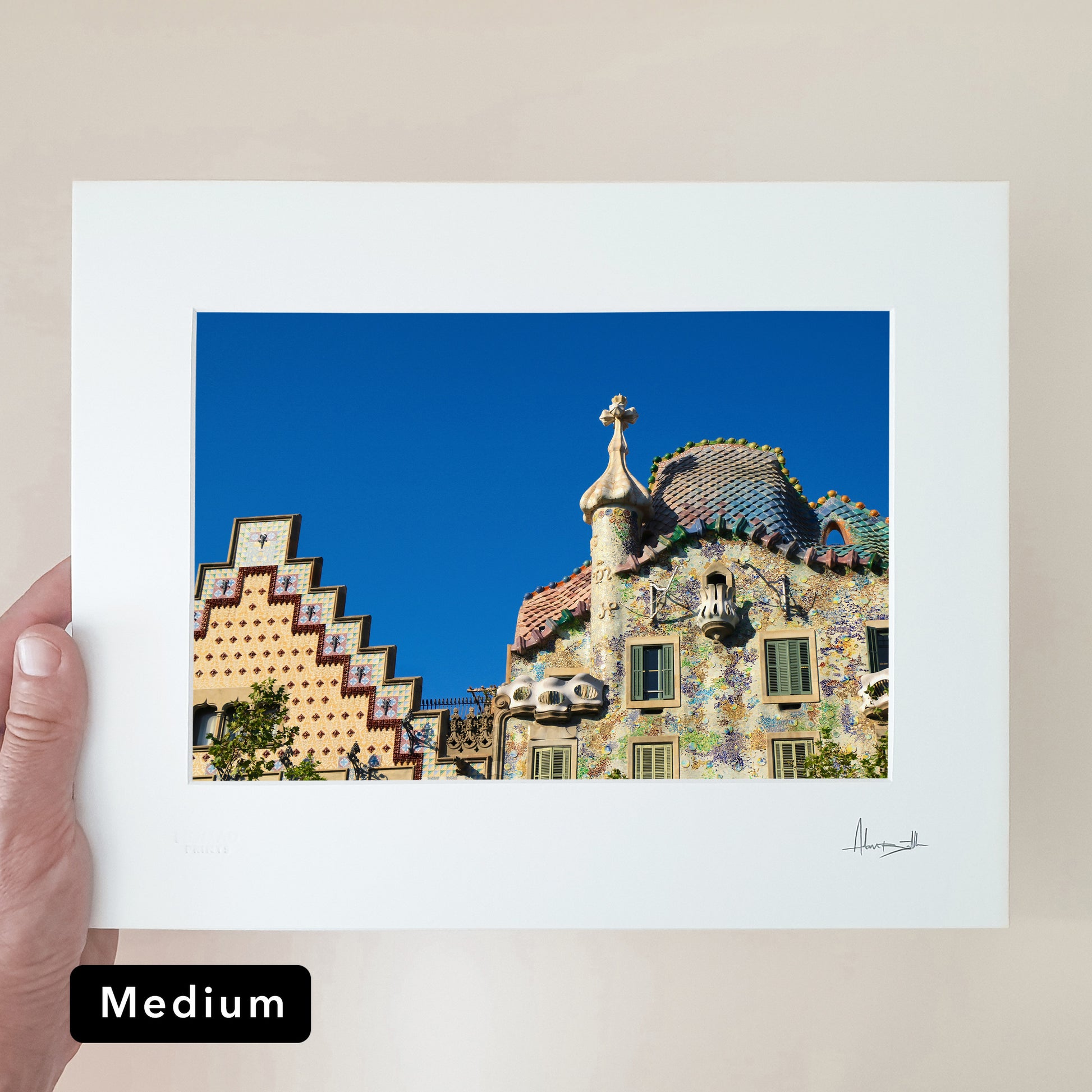 - Window mounted in a 1mm thickness white passepartout matt board.Hand signed in pencil.