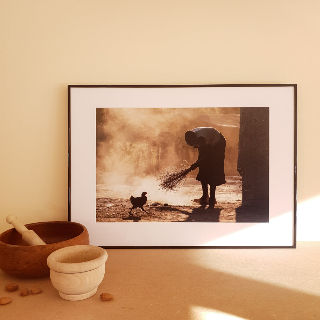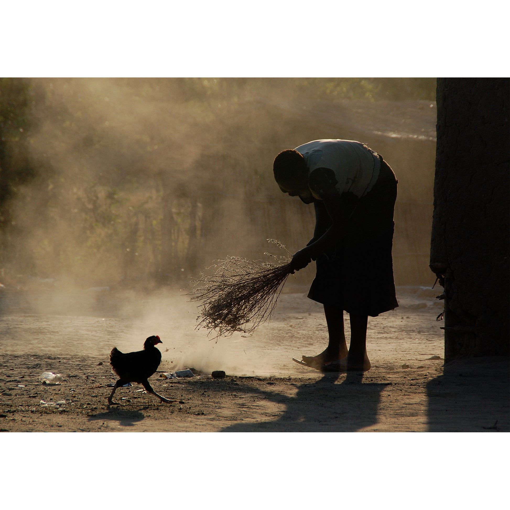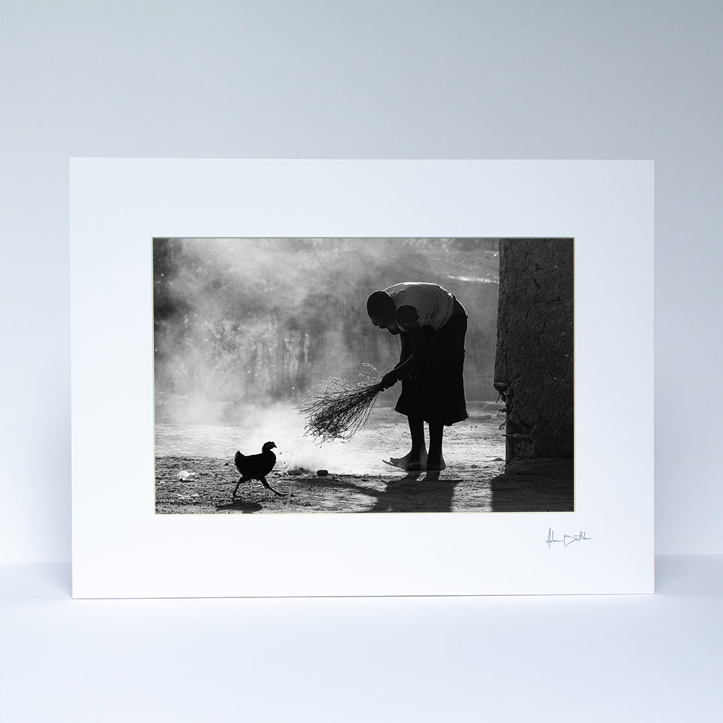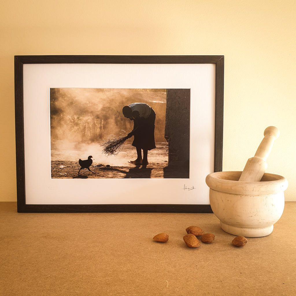 The first light of dawn unveils a scene of simple beauty. As the first chapter of a new day is barely beginning, this woman busies herself with quiet purpose. A simple daily ritual that is repeated endlessly across the dusty developing world and through the ages. Her silhouette Illuminated would send any stirring photographer, grasping for his camera, still blinking in the morning light.